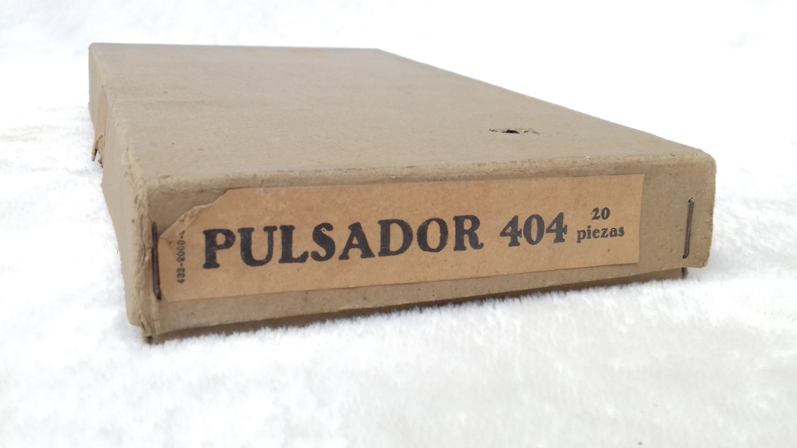 Caja de 20 pulsadores para timbre. Años '50. Están sin usar, procedentes de liquidación de tienda de electricidad. En la parte posterior presentan alguna grieta en el plástico debido al paso del tiempo, pero por la parte anterior están en perfecto estado. Medidas: 4,5 cm x 2 cm.