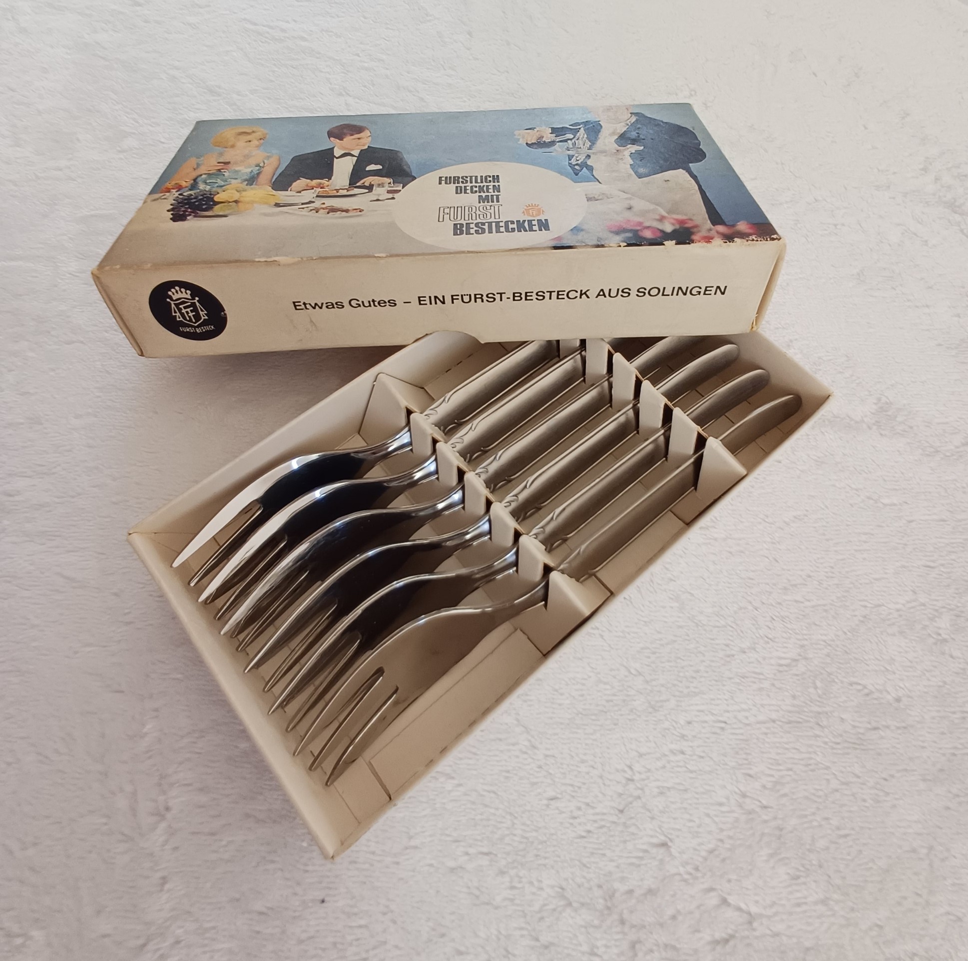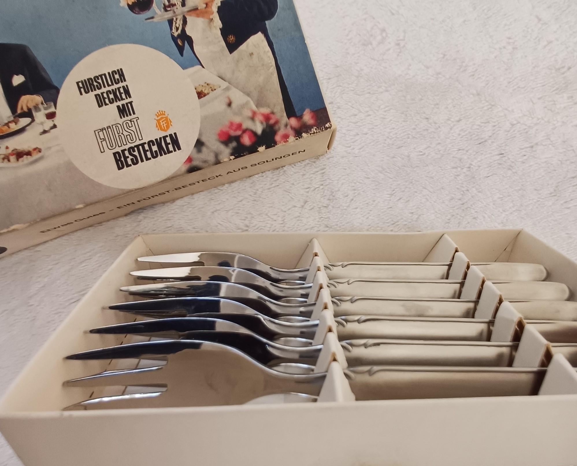 Caja de seis tenedores de aperitivo de la marca alemana Fürst Besteck