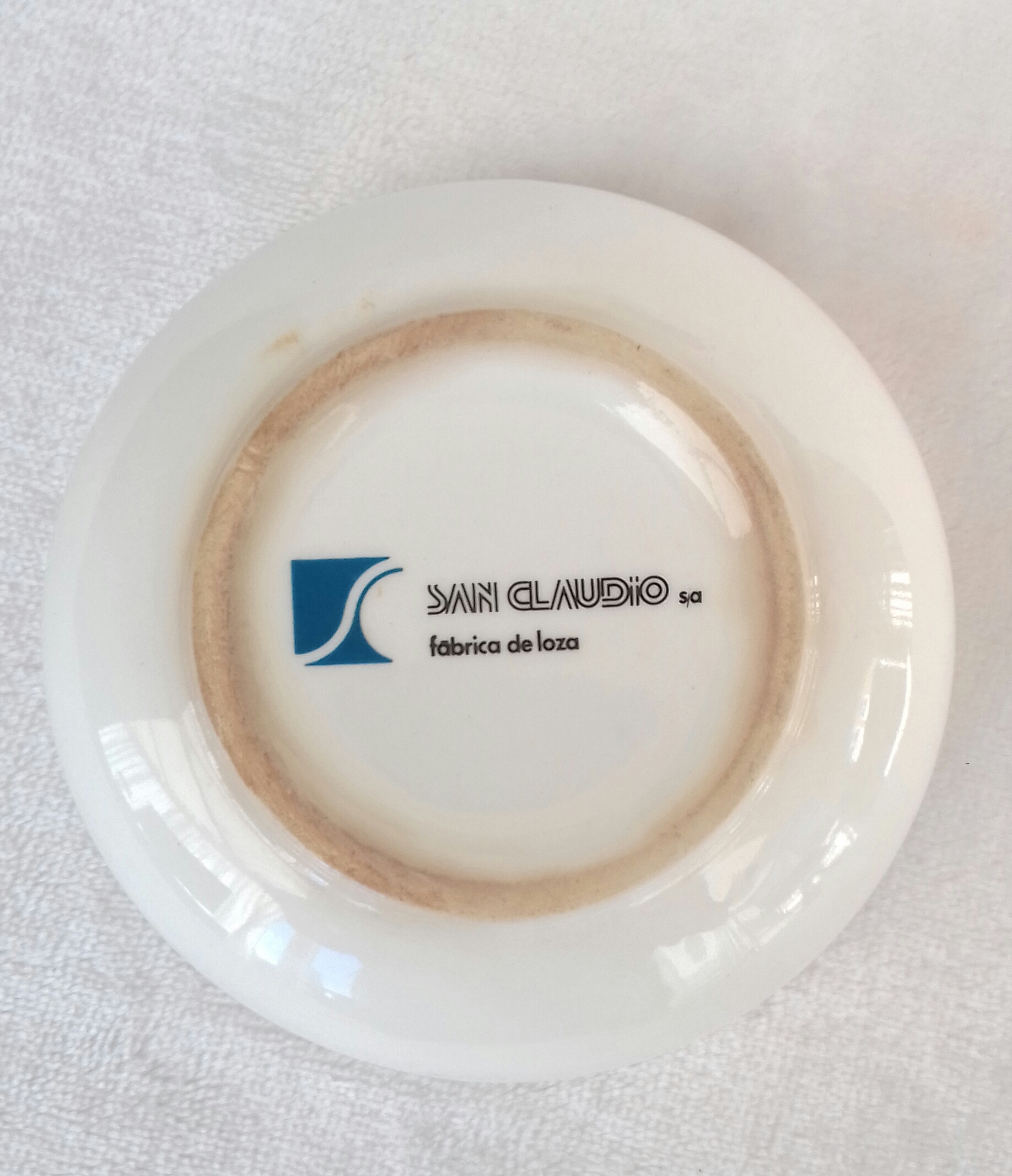 Cenicero de loza con publicidad del Banco de Granada, fabricado por la casa San Claudio.