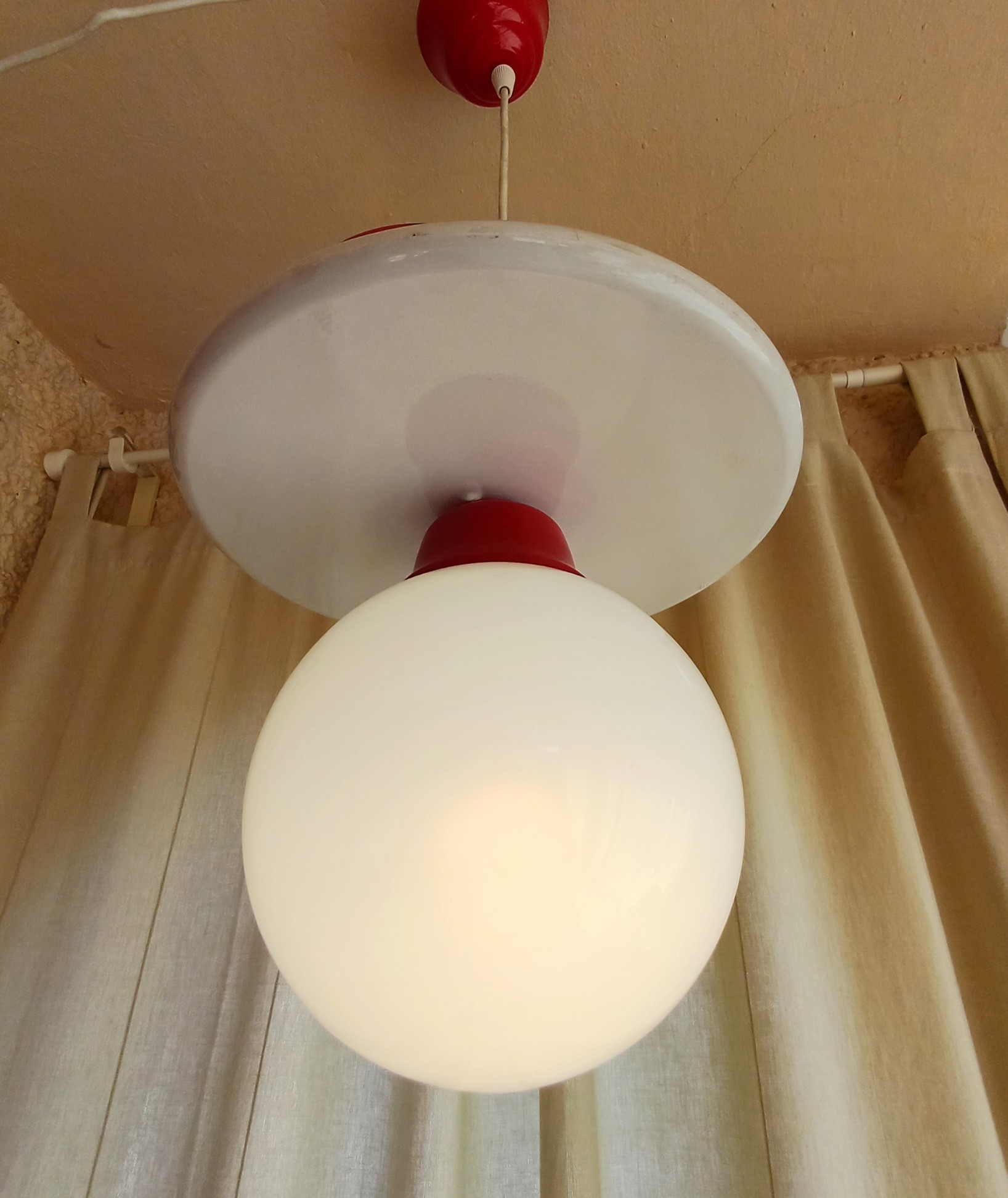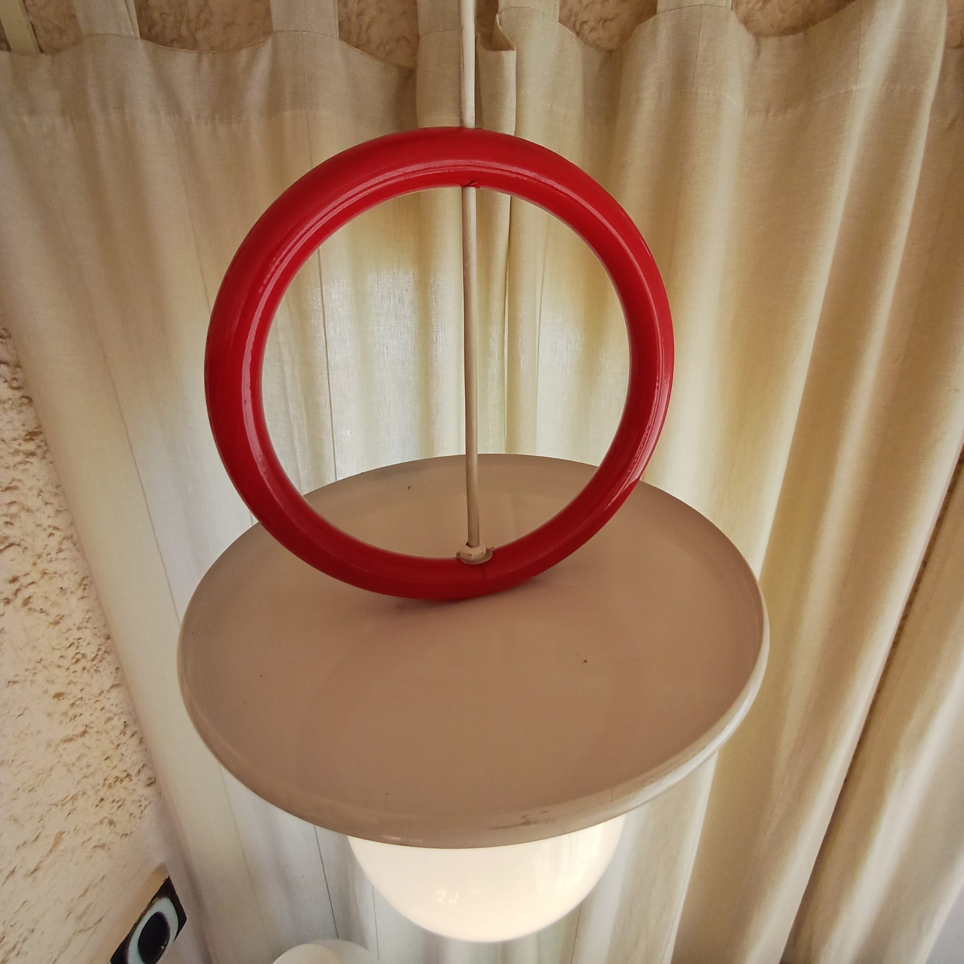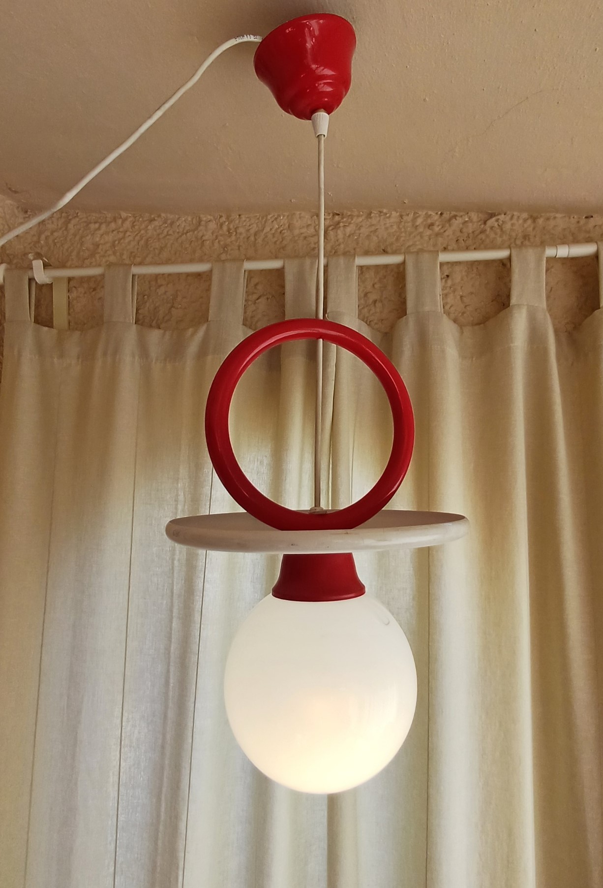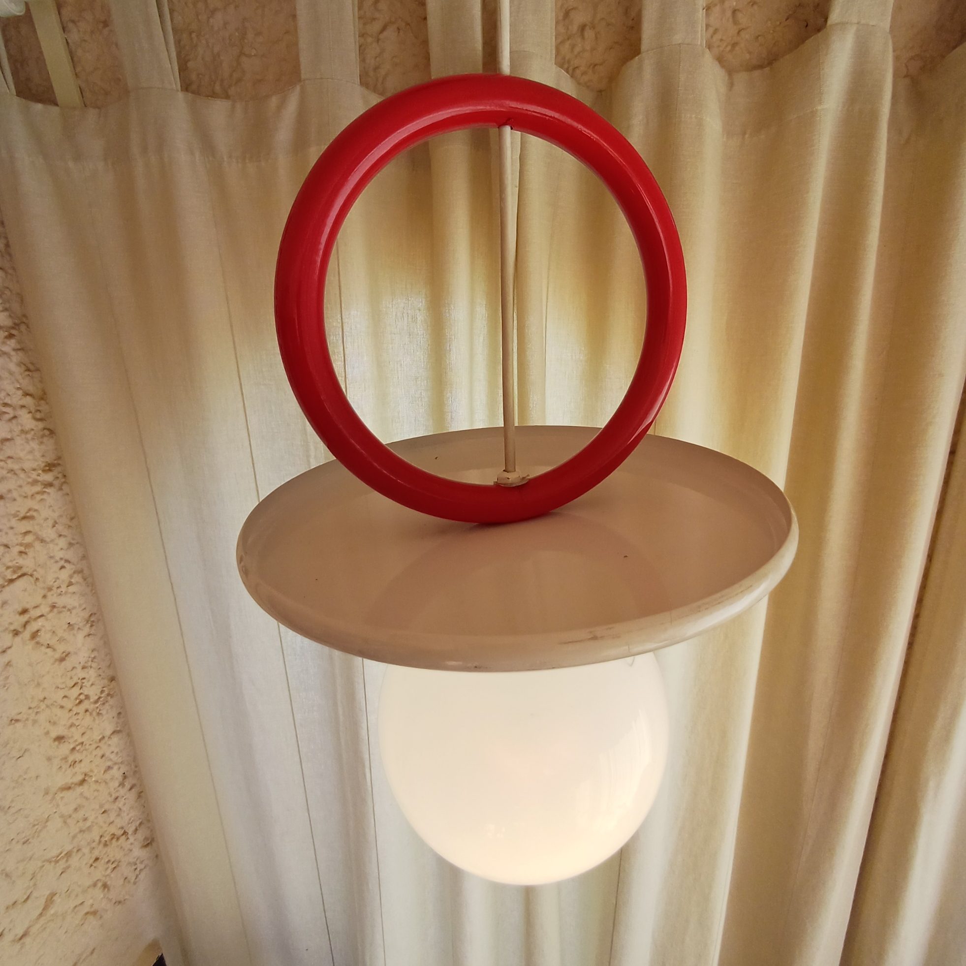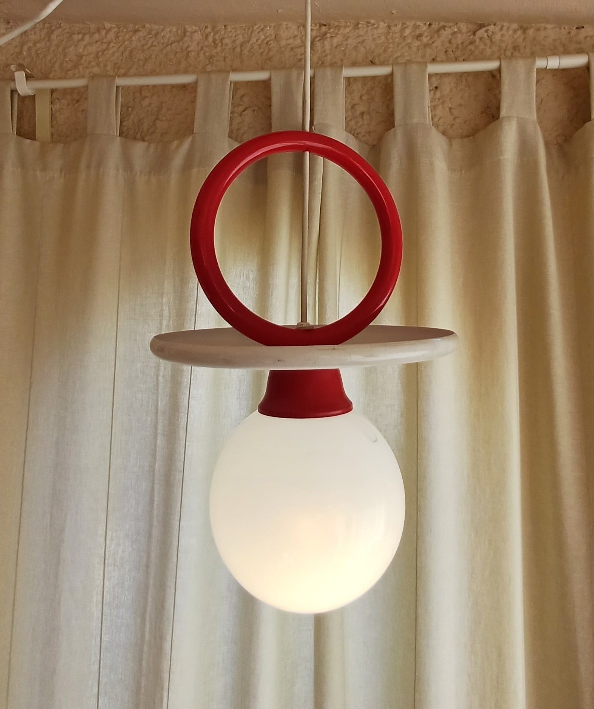 Lámpara para dormitorio infantil con forma de chupete. Metal lacado en rojo y blanco. Años 80. Nunca utilizada antes.