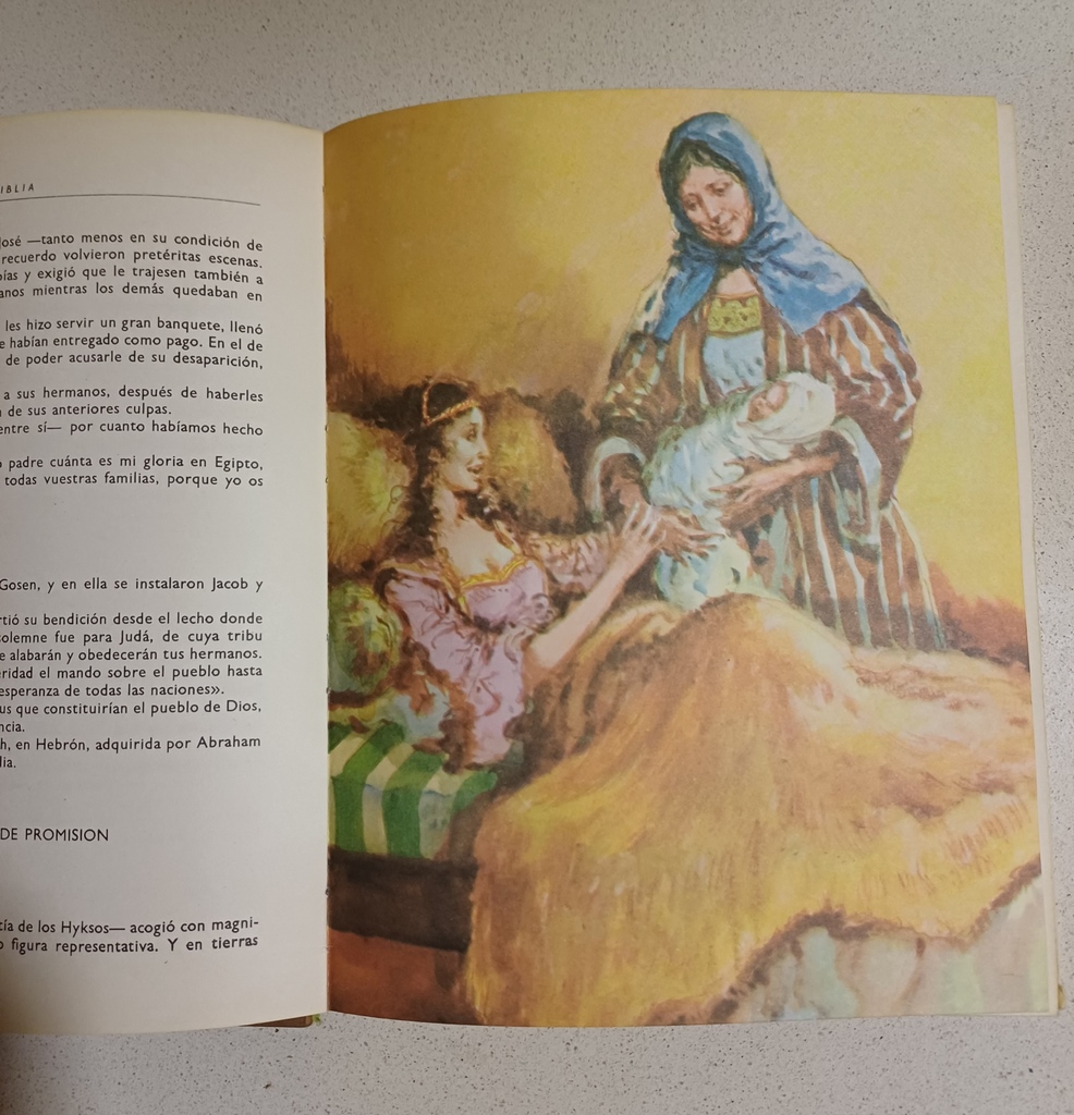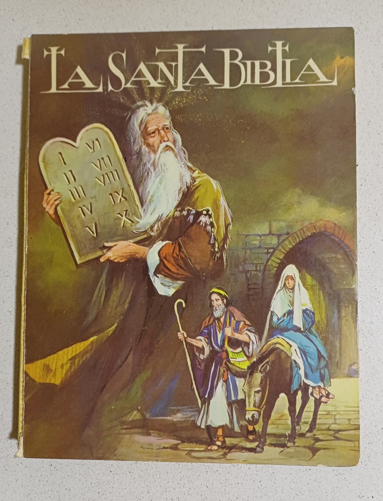 Libro ilustrado 'La Santa Biblia'. Resumido e ilustrado a color, ideal para niños. Como aparece en las fotos, tiene deteriorado el lomo. Edición impresa en Bilbao en 1962.
