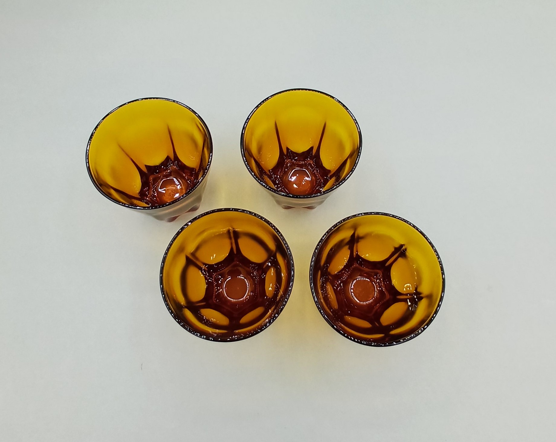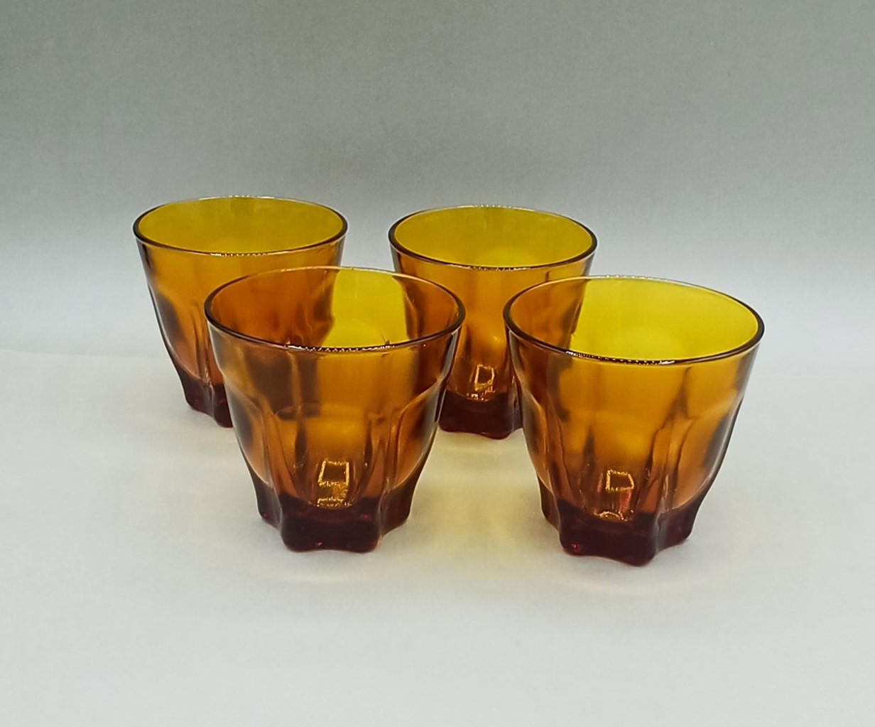 Lote de cuatro vasos de cristal color miel de la marca Elsa.