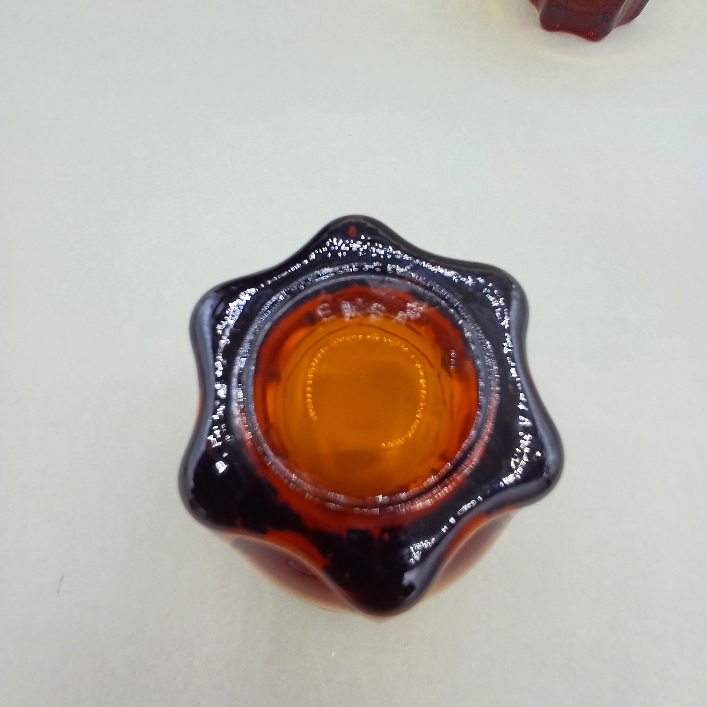 Lote de cuatro vasos de cristal color miel de la marca Elsa. 8 cm de alto, 8 cm de diámetro por la parte superior.