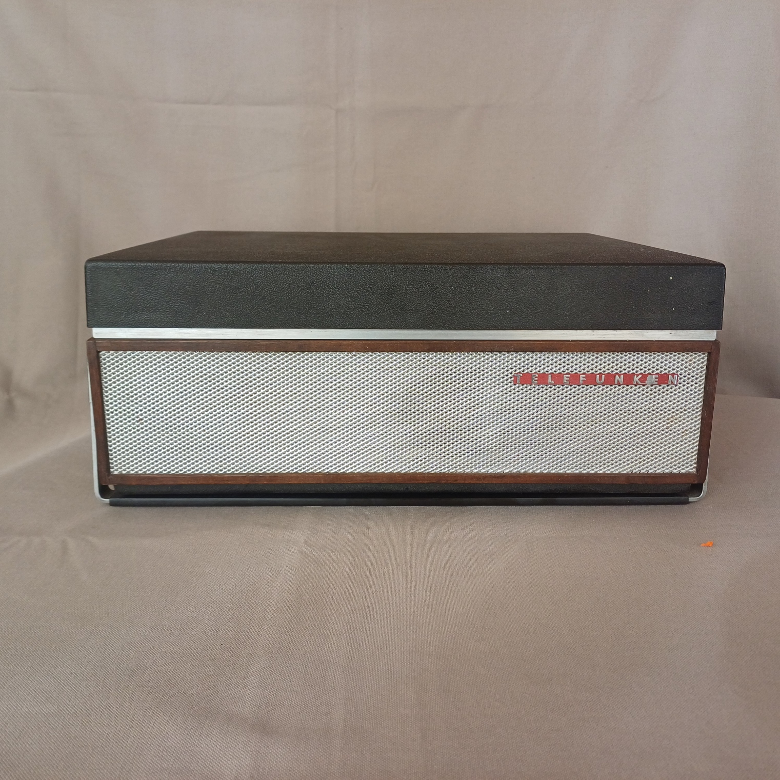 Magnetófono Telefunken 201 TS. Fabricado en España en los años 60. Funciona. Con asa para transportarlo y altavoz incorporado. Se incluyen 4 cintas magnéticas. Medidas: 37,5 cm de largo, 31 cm de ancho, 14 cm de alto.