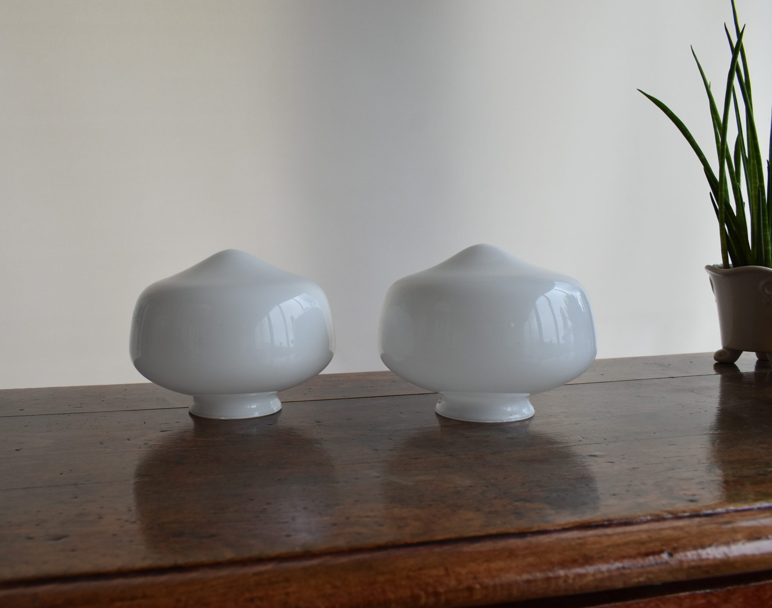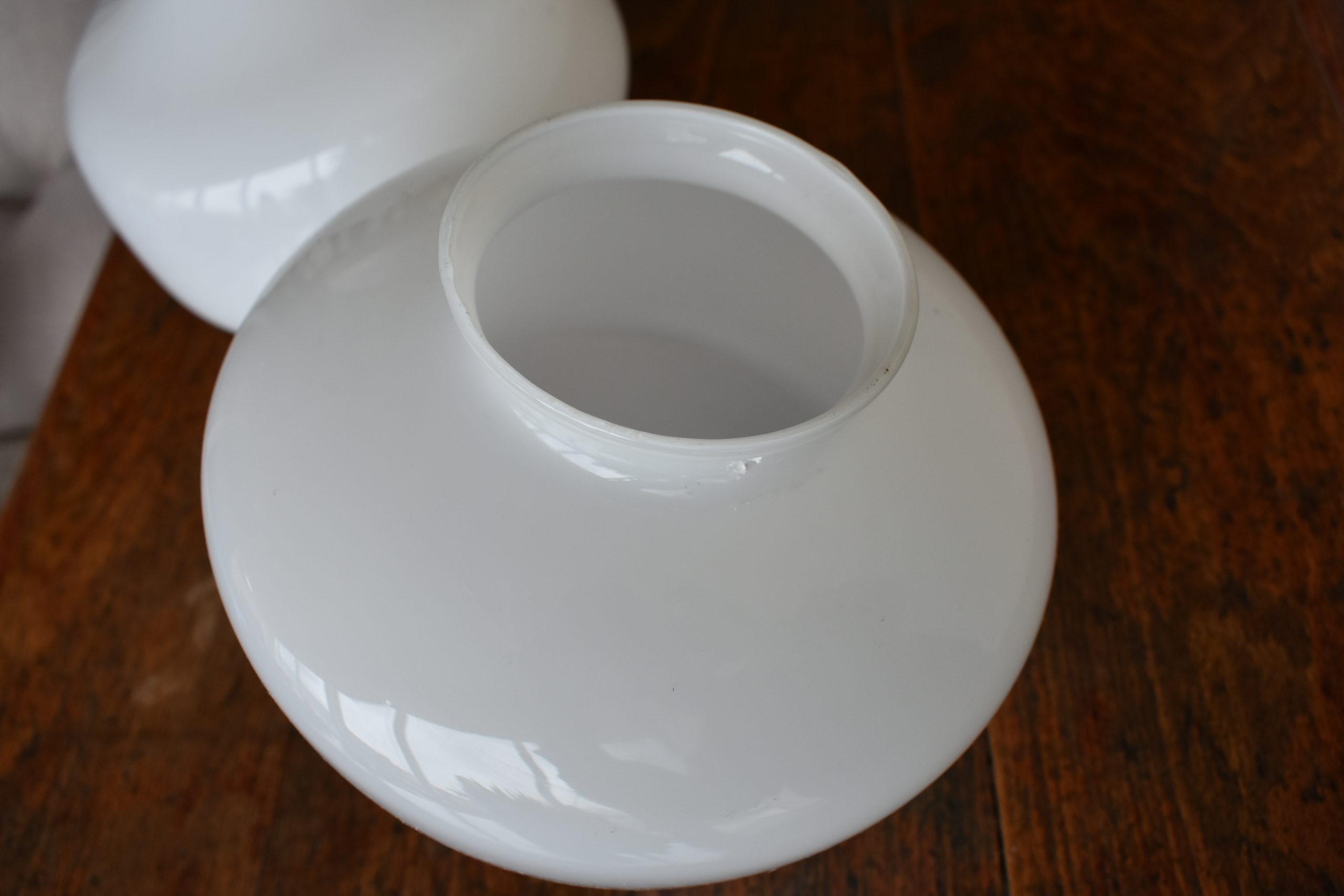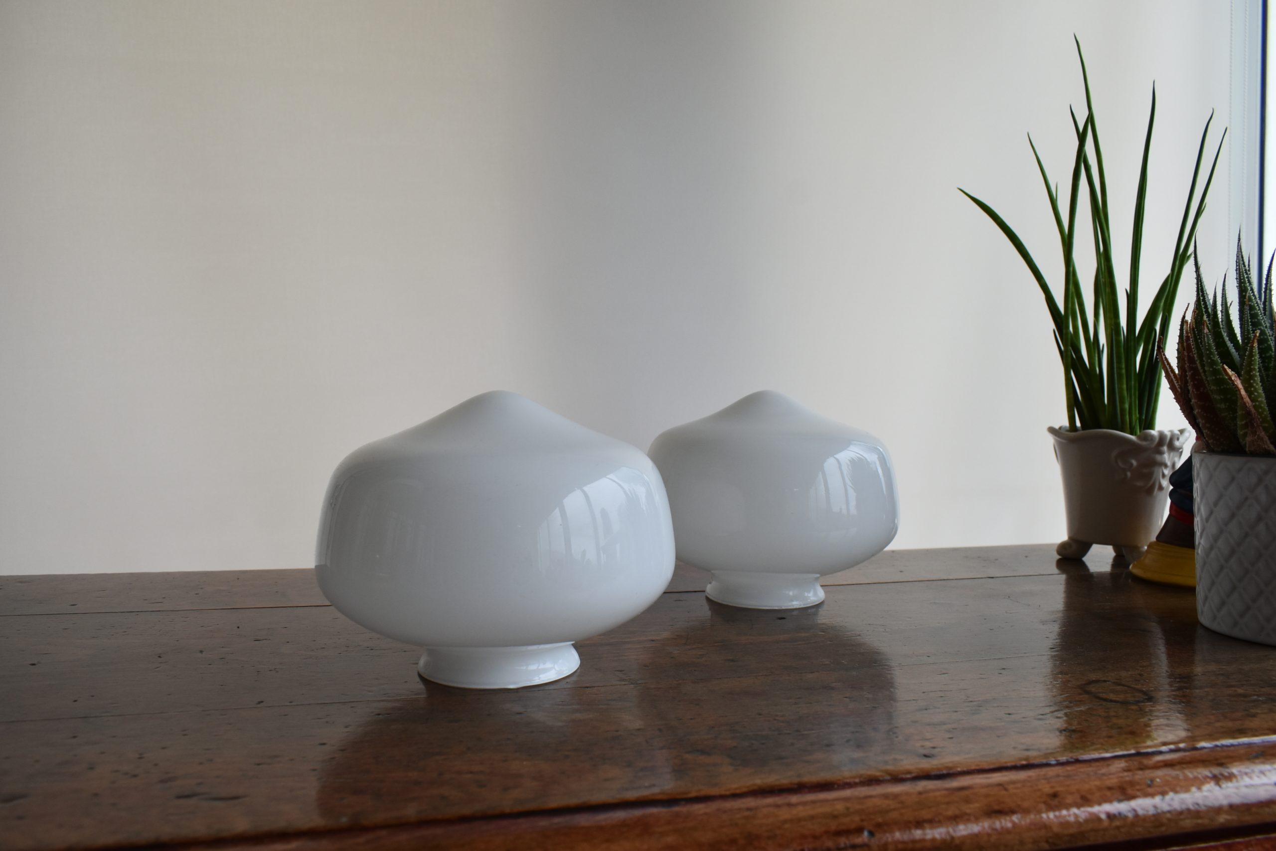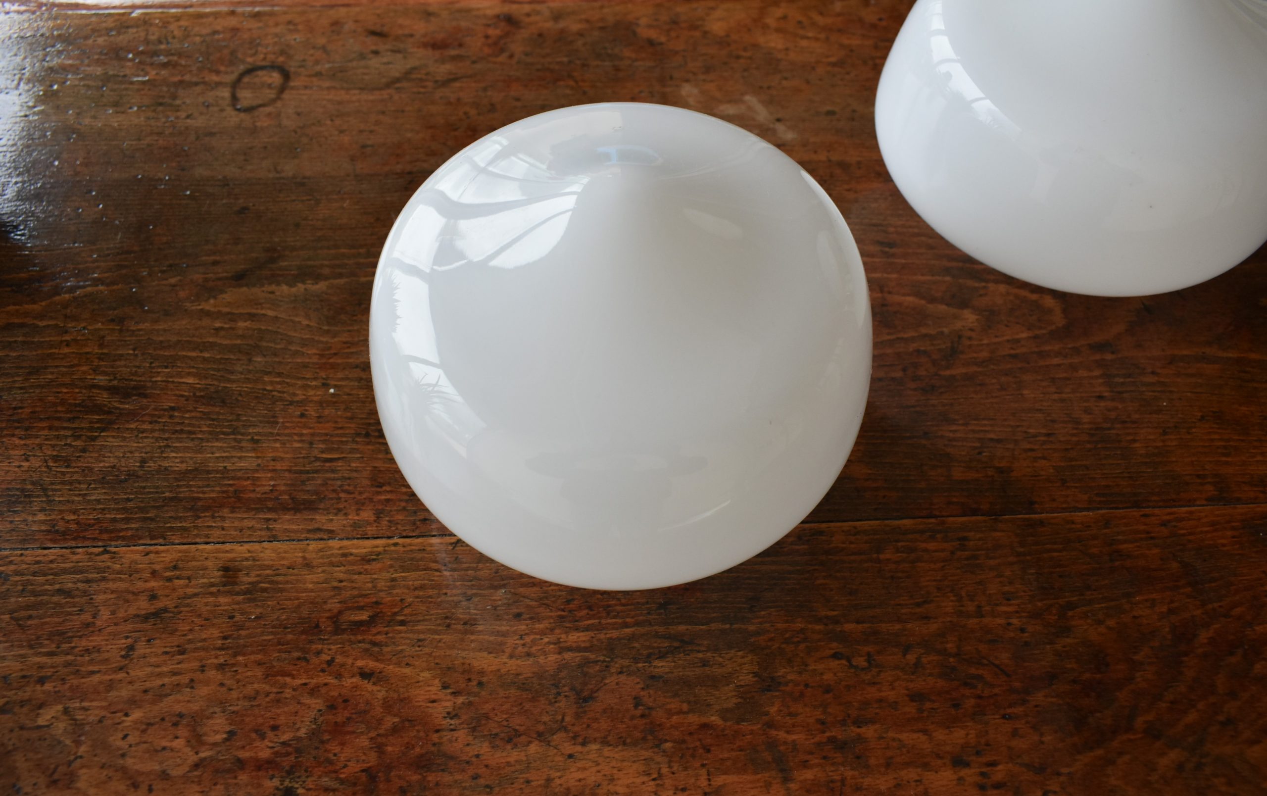 Pareja de tulipas de opalina blanca para lámpara de techo o para ventilador de techo con luz. Diámetro de la boca: exterior - 8cm; Interior: 6,5 cm. Altura: 14 cm.