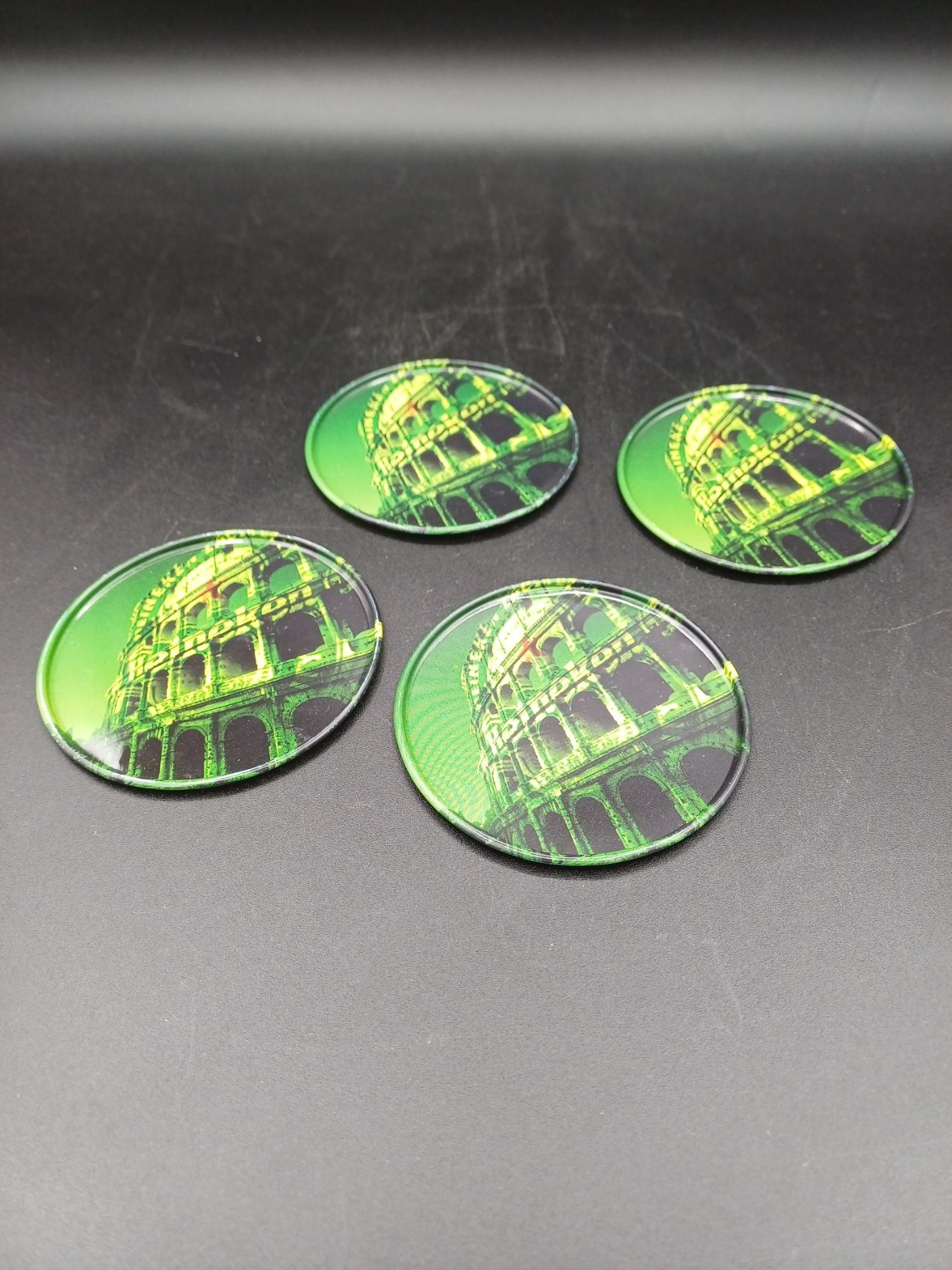 Paquete con 4 posavasos metálicos publicidad de Heineken. Imagen del Coliseo Romano. Con su caja original.