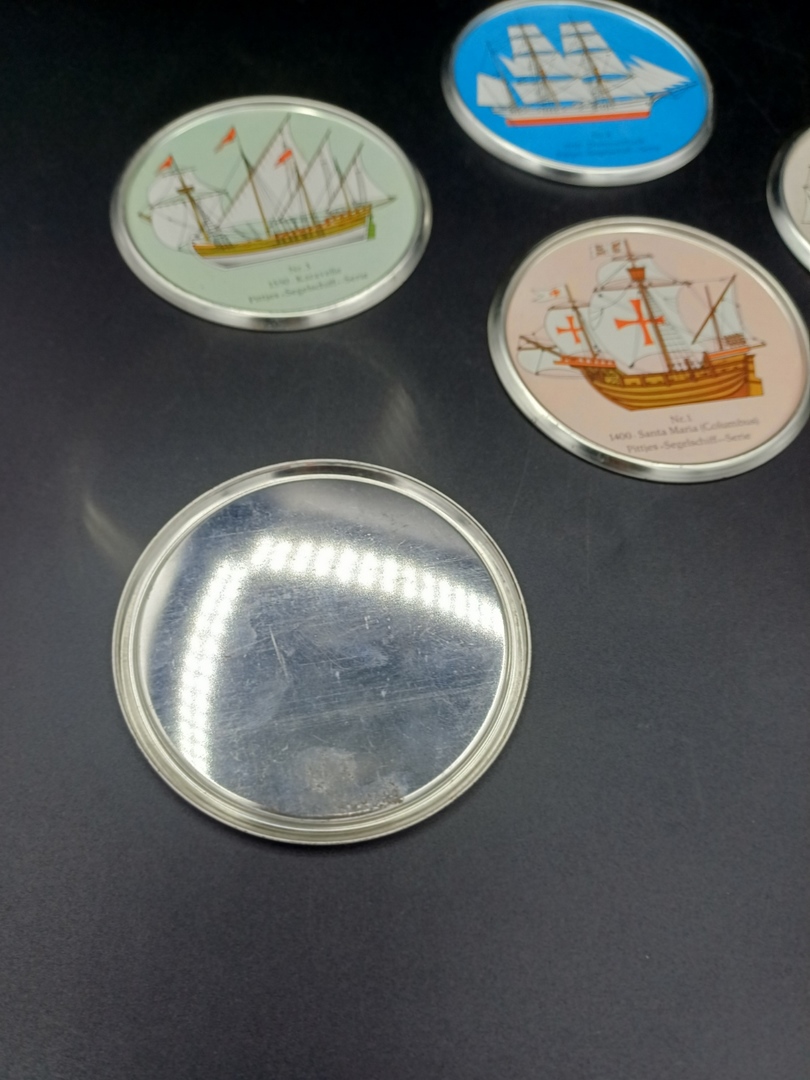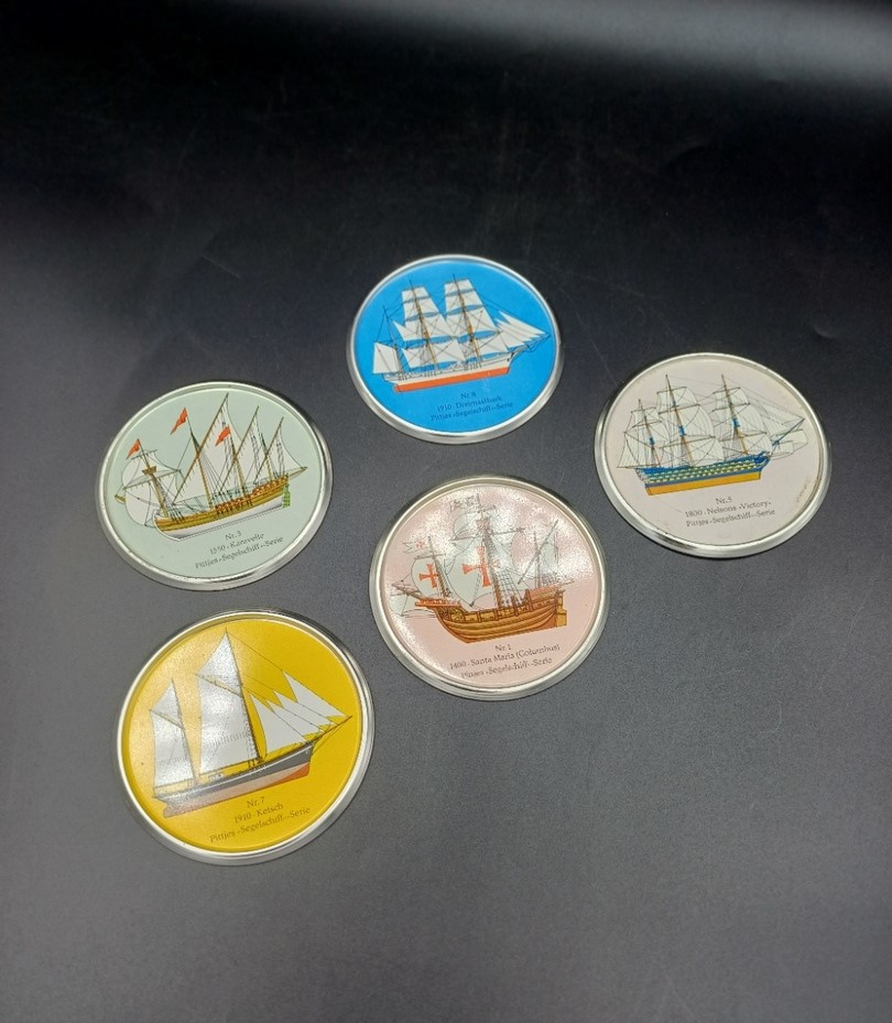 Conjunto de 5 posavasos con motivos de antiguas embarcaciones.