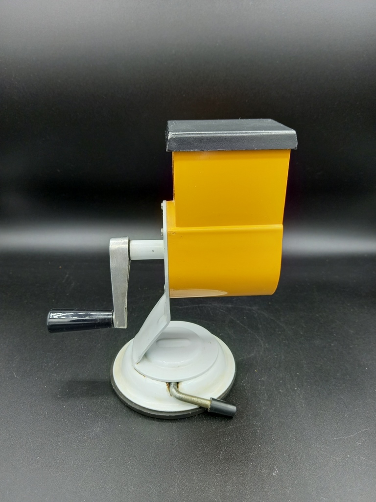 Antiguo rallador marca Ilsa para queso, pan, verduras, etc. En muy buen estado de conservación y con su tapadera original. La palanca de la ventosa no funciona correctamente. 19 cm de altura, 17 cm de ancho (incluida manivela).