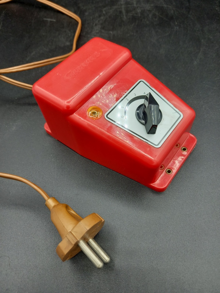 Transformador fabricado por Siemens para la marca de coches de slot ‘Carrera’.