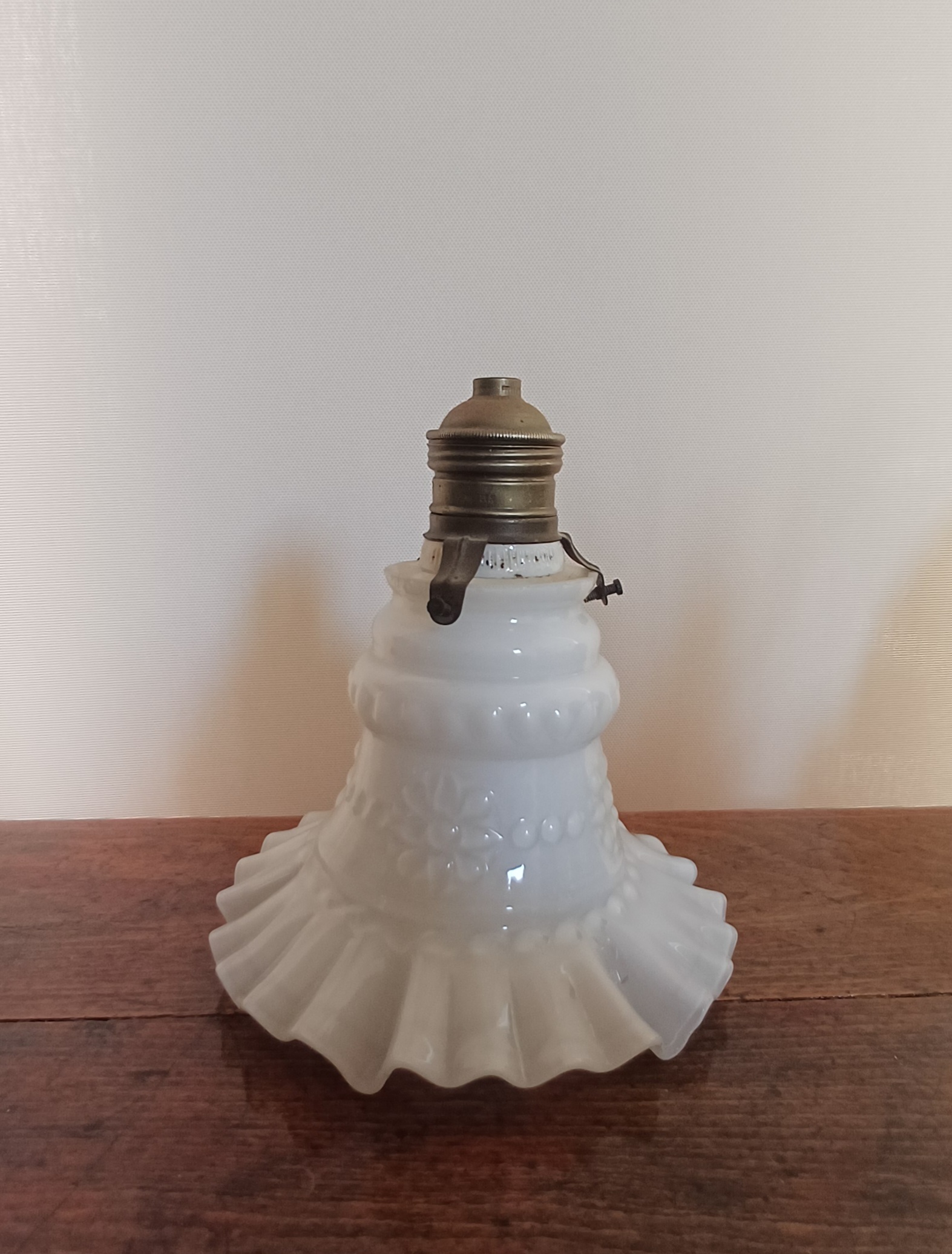 Preciosa pantalla de lámpara antigua de opalina blanca.